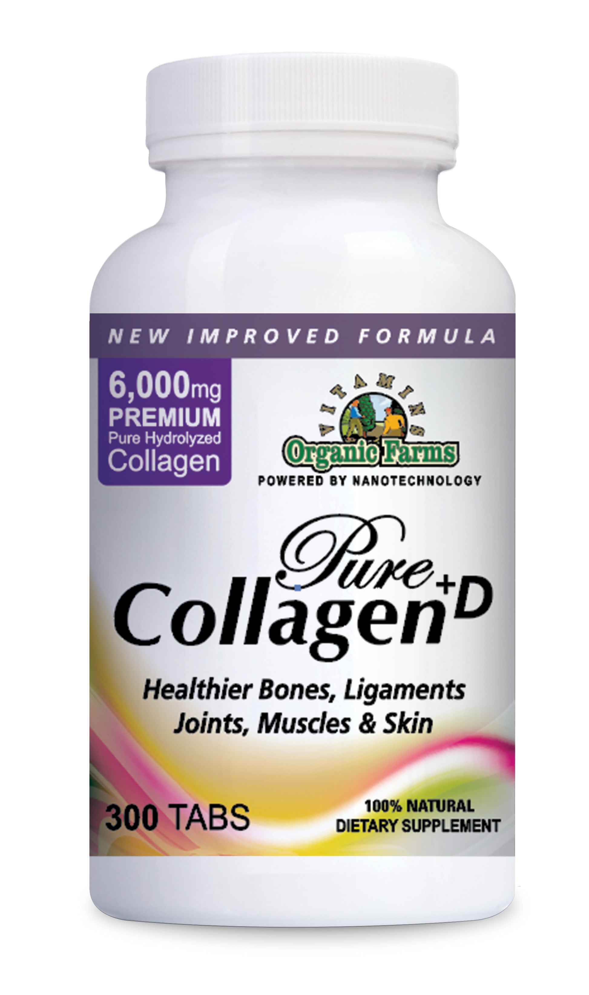 Organic Farms Vitamins Collagen Pure+D, Premium Collagen Pills 6000mg hydrolyzed Collagen peptides Type 1 & 3-100% Natural Dietary Supplement, 300 Tablets
